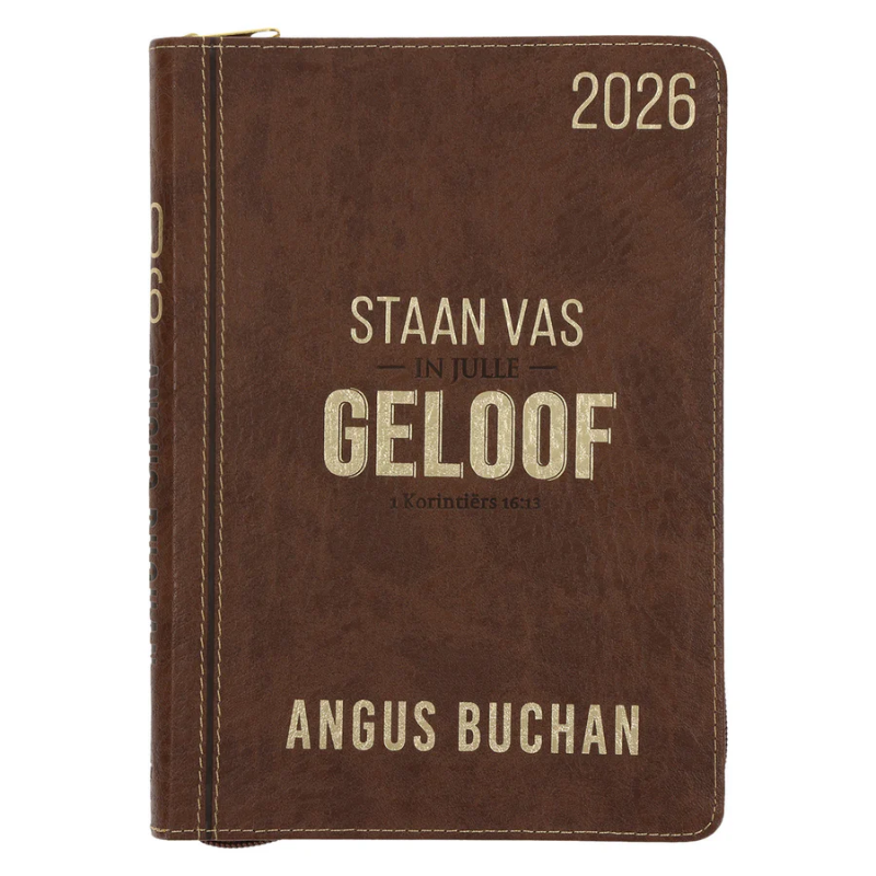 ~ Die Angus Buchan-dagbeplanner 2026 is ideaal vir elkeen wat hulle dag doelgerig saam met God wil begin. Daar is ’n bladsy per dag vir afsprake met plek om jou eie tye in te vul. Die dagbeplanner se kunsleer-omslag het ’n rits sodat jy enige los papiere of klein items daarin kan toerits.