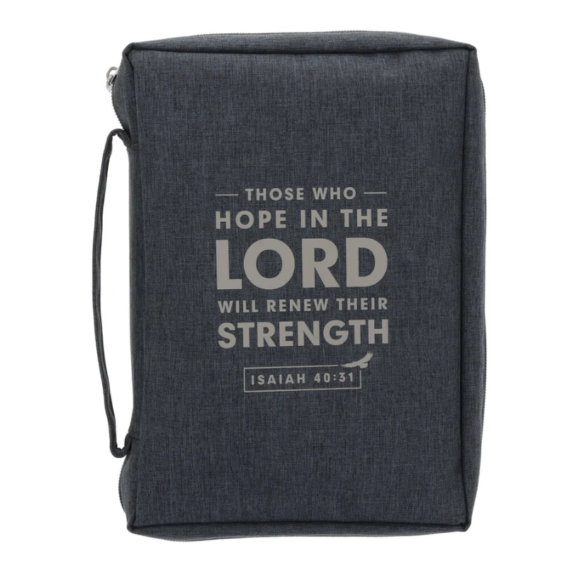 ~ This affordable, durable Those Who Hope in the Lord Will Renew Their Strength Polyester Bible Bag can weather a lot of handling. The message it bears can also be used as a source of encouragement.
