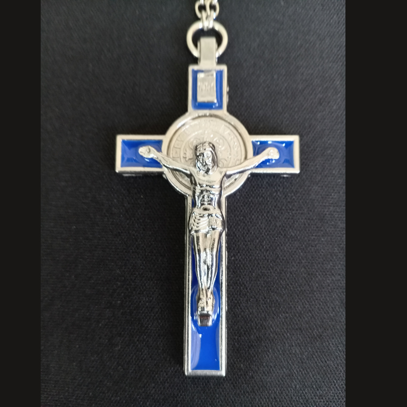 ~ Cross, With Chain (Small) Blue & Silver Enamel